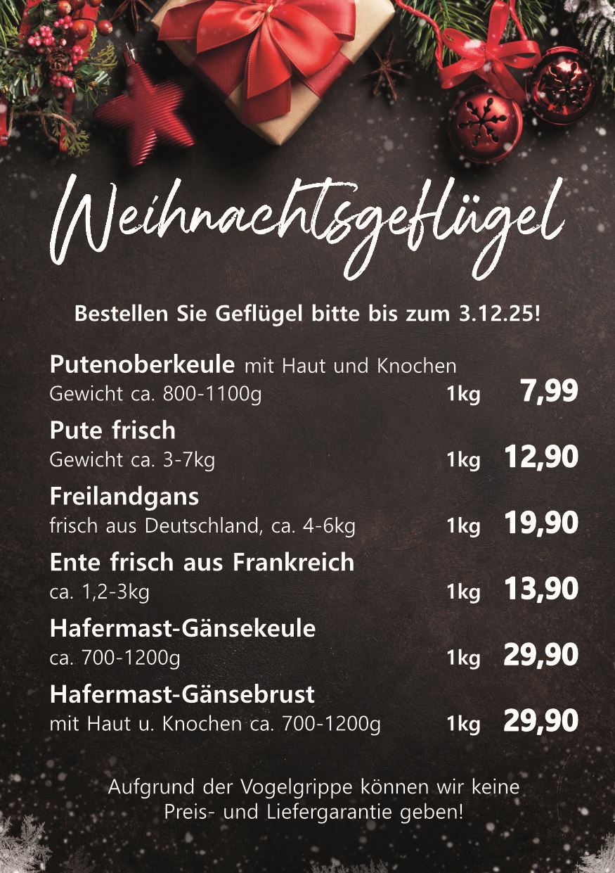 Bitte geben Sie uns Ihre Geflügelbestellung für Weihnachten
