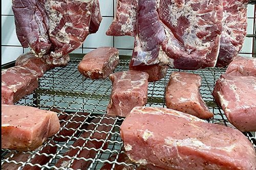 Maßgeblich und federführend in der Erfolgsgeschichte unseres Unternehmens sind unsere vier Metzger, die im Hintergrund unsere Produkte von höchster Qualität herstellen. Sie sind bereits seit vielen Jahren als eingespieltes Team in gleicher Besetzung tätig und prüfen verantwortungsvoll Rohstoffe, Gewürze und Zutaten, aus denen unser beliebtes Warensortiment produziert wird, nach strengsten Kriterien. Den Metzgern stehen unsere drei unermüdlichen Produktionshelferinnen zur Seite. Sie arbeiten mit ihnen Hand in Hand und sorgen so für optimale Bedingungen bei der Herstellung unserer frischen und hochwertigen Waren.